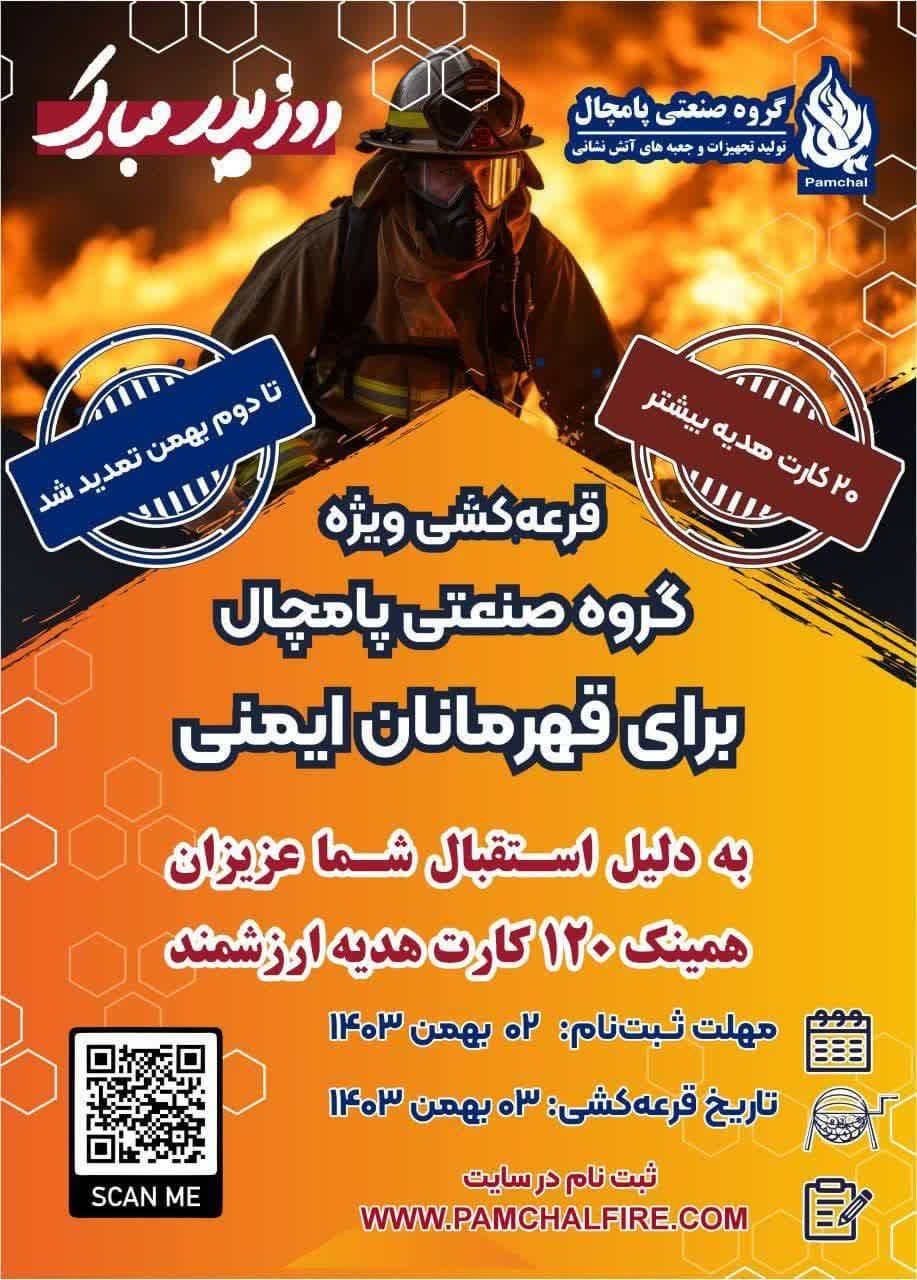 گروه صنعتی پامچال با ۶ دهه سابقه در تولید تجهیزات آتشنشانی، بهعنوان اولین دارنده استاندارد ملی (۲۲۱۵۷.۱) و پیشرو در ارتقای کیفیت و ایمنی، این کمپین را به احترام و قدردانی از قهرمانان ایمنی کشور برگزار میکند.