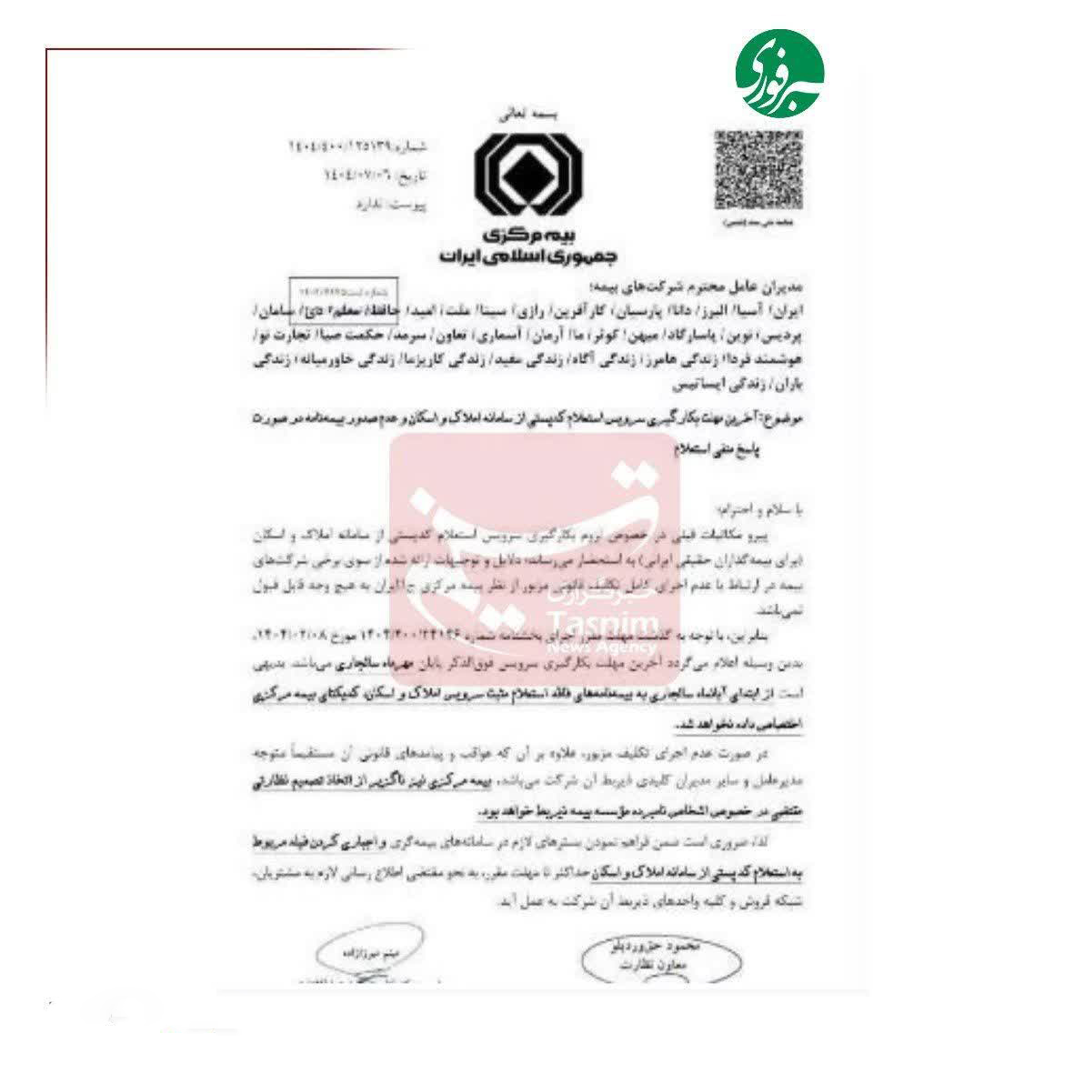 🔹از امروز (اول آبانماه ۱۴۰۴) اجرای مصوبه نظارتی بیمه مرکزی درباره الزام استعلام کدپستی از سامانه املاک و اسکان بهطور کامل آغاز شد و بر این اساس، صدور هر نوع بیمهنامه بدون تأیید کدپستی معتبر متوقف شده است. 🔹بیمه مرکزی اعلام کرده با آغاز این مرحله، سامانه مرکزی صدور بیمه از امروز بهصورت خودکار در صورت نبود تأیید کدپستی، از صدور کد یکتا جلوگیری میکند و در نتیجه بیمهنامه فاقد استعلام «فاقد وجاهت قانونی» خواهد بود.